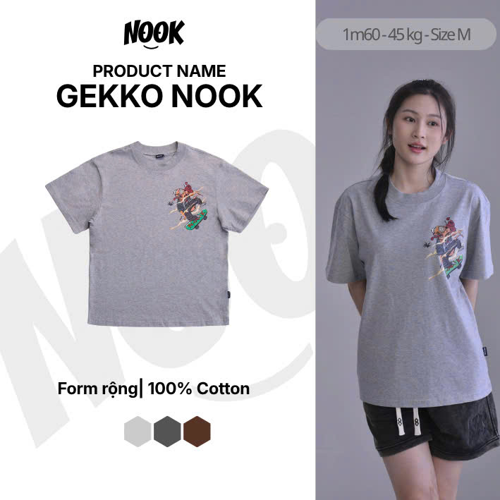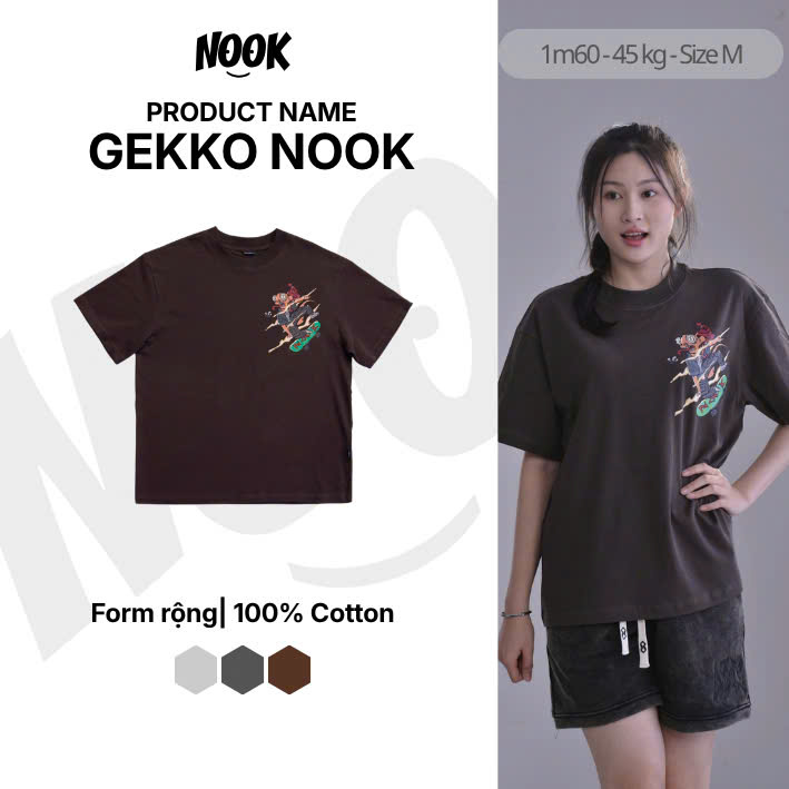 Áo thun in hoạ tiết tắc kè độc đáo NOOK form rộng 100% Cotton – A04