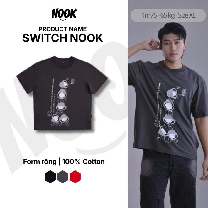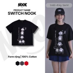 Áo thun SWITCH NOOK form rộng, chất liệu 100% cotton mềm mịn, thoáng mát. Thiết kế đen basic kết hợp graphic “Switch” độc đáo mang vibe streetwear hiện đại, dễ phối đồ, phù hợp mặc hằng ngày.